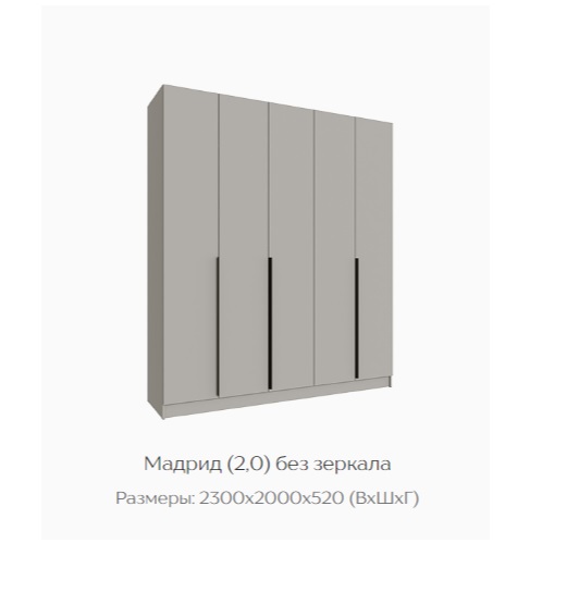Шкаф Мадрид 2000 мм без зеркала, кашемир (Текс)